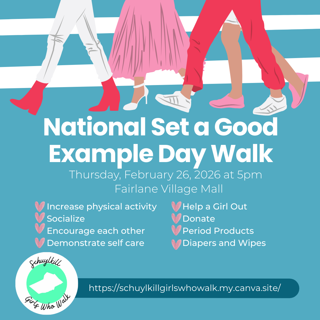 Friends, moms, sisters, daughters, co-workers.  Let’s lead by example.  Join this Schuylkill Girls Who Walk stroll to set an example of healthy behaviors and philanthropy.